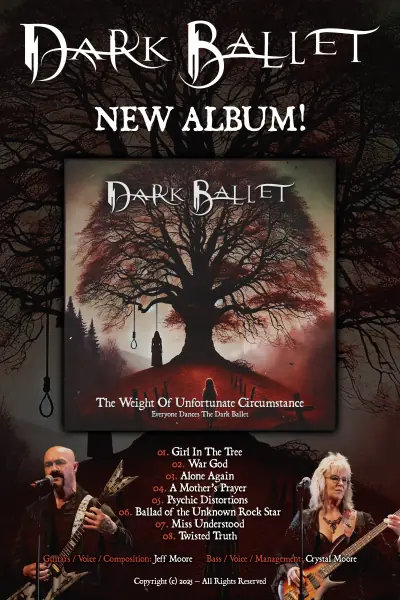 Composing original, story-driven, pulse-pounding music with a vivid stage spectacle in mind, Dark Ballet combines the unbridled power of rock with the grace and intensity of ballet, modern dance, and more. Our immersive shows captivate audiences with electrifying dancers and other movement artists, dynamic visual arts, and mesmerizing choreography that transcends the ordinary.